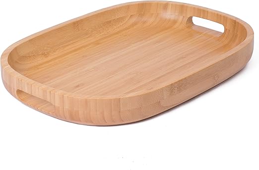 Amazon Com Bamboo Wood Serving Tray With Handles Rustic