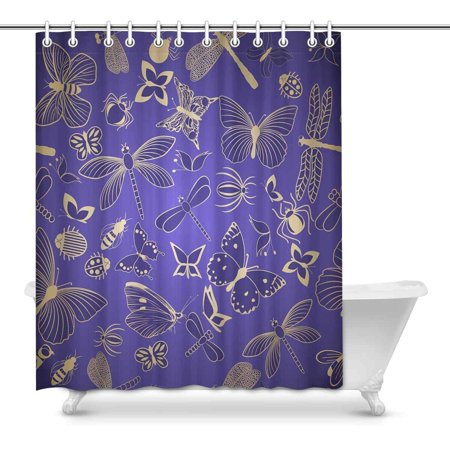 Pop Dragonfly Purple Decor Waterproof Bathroom Shower Curtain Bath