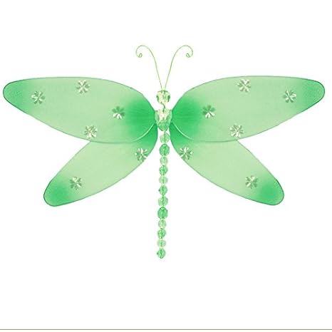 Hanging Dragonfly Large 13 Green Sparkle Mesh Nylon Dragonflies