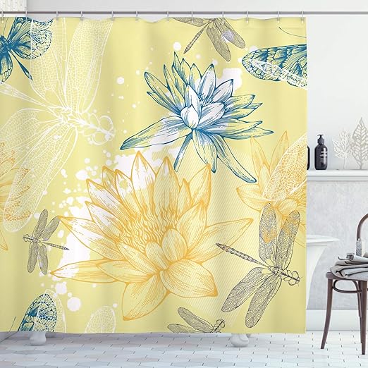 Water Lily Reflection Dragonfly Bathroom Decor Fabric Shower