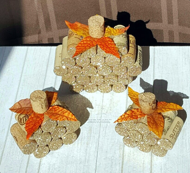 Rustic Fall Decor Fall Wedding Centerpieces Cork Pumpkins Etsy