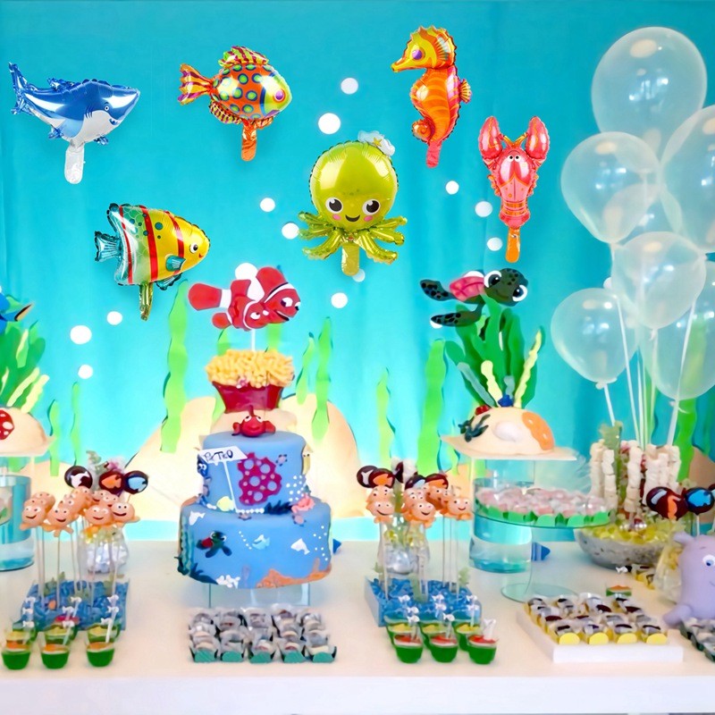 Lovely 6pcs Ocean Fish Octopus Shark Foil Balloons Animal Birthday
