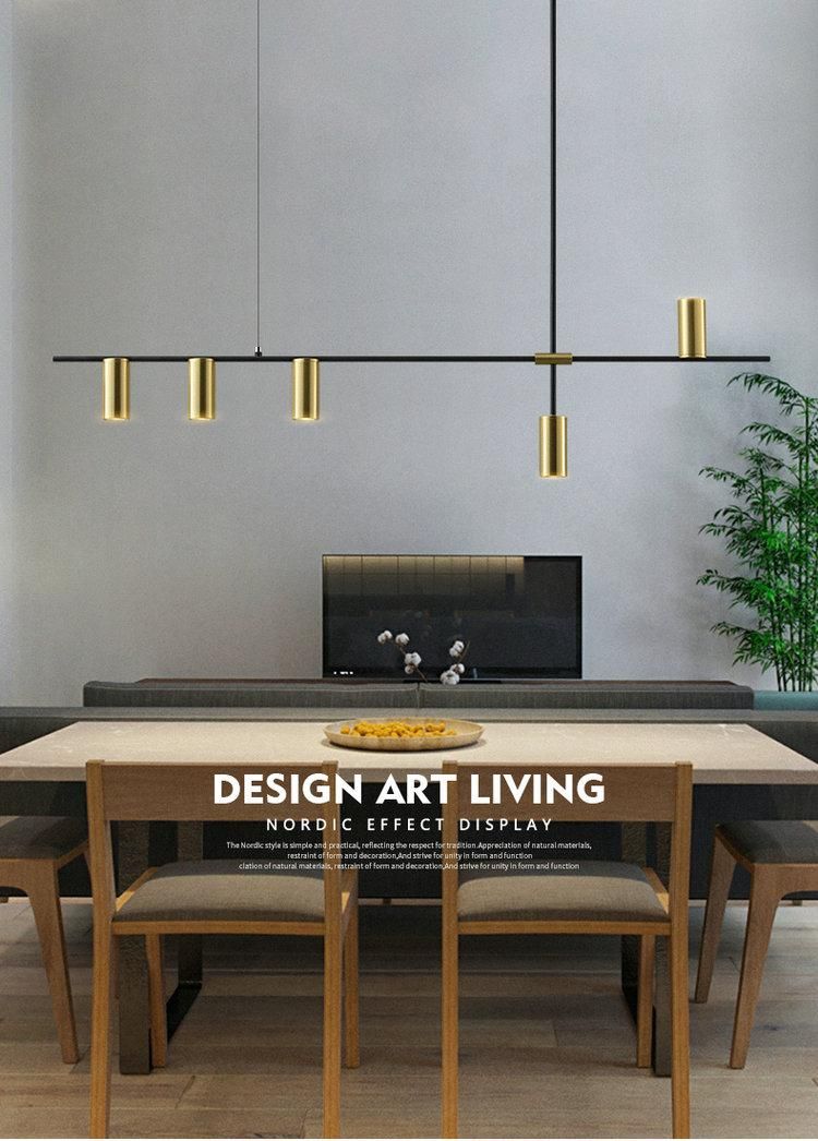 Black Gold Tube Pendant Light Fixtures Living Room Modern Kitchen