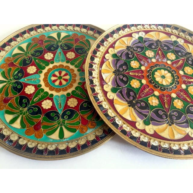 Vintage Mid Century Moroccan Brass Multicolor Inlaid Enamel