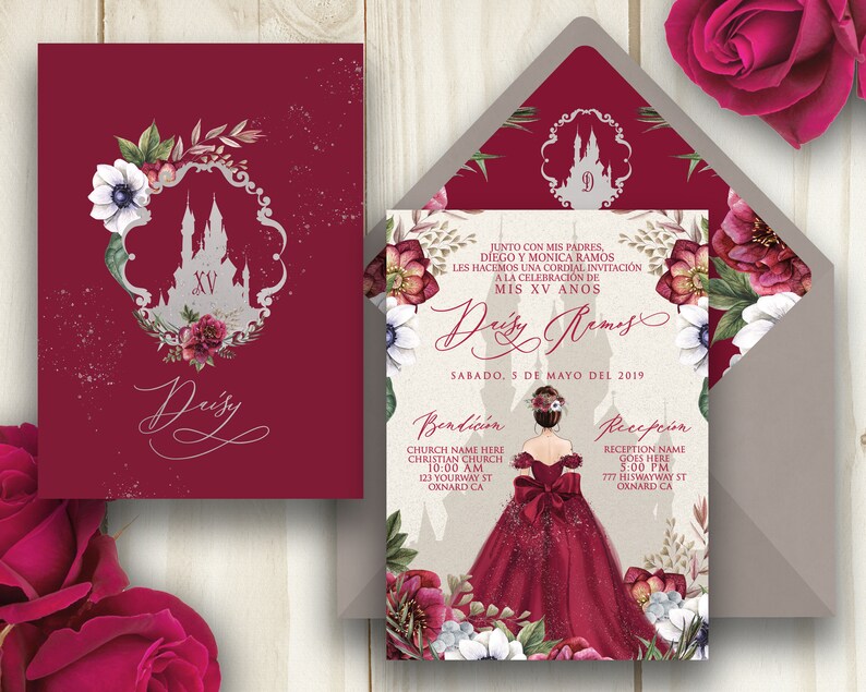 Quince Royalty Invitation Princess Burgundy Dress Mis Etsy