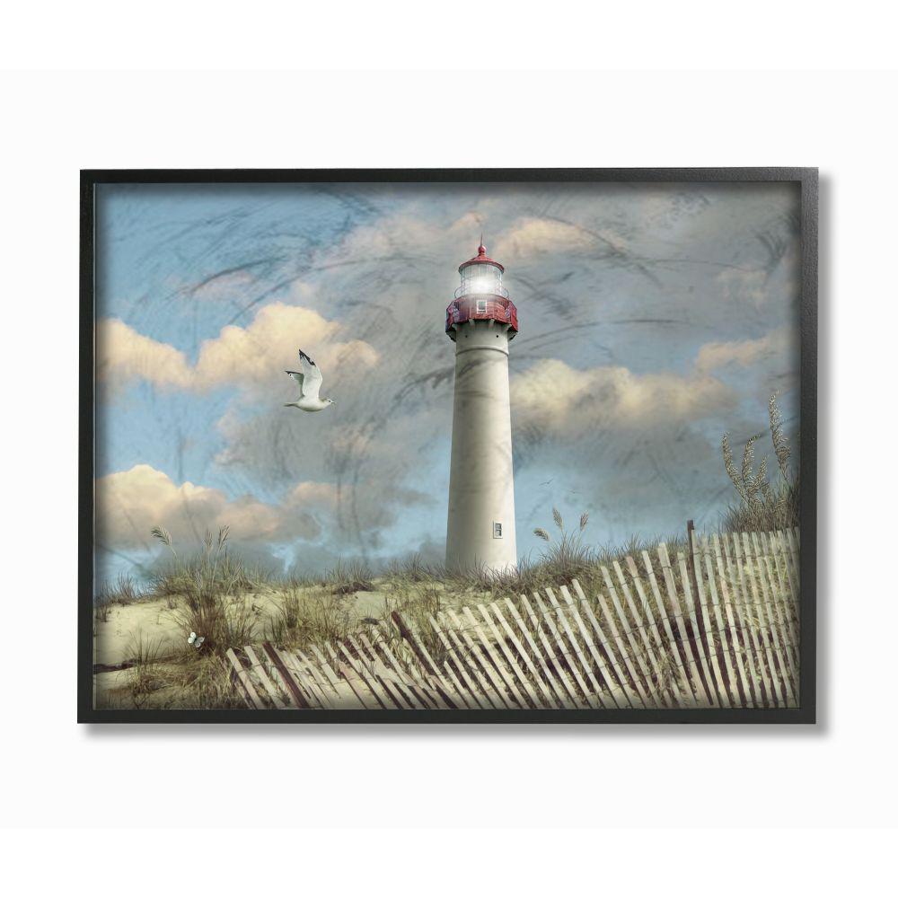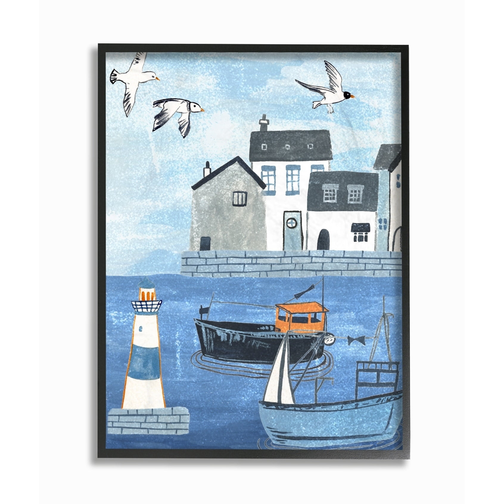 The Stupell Home Decor Lighthouse Seagulls Illustrated Dock Scene