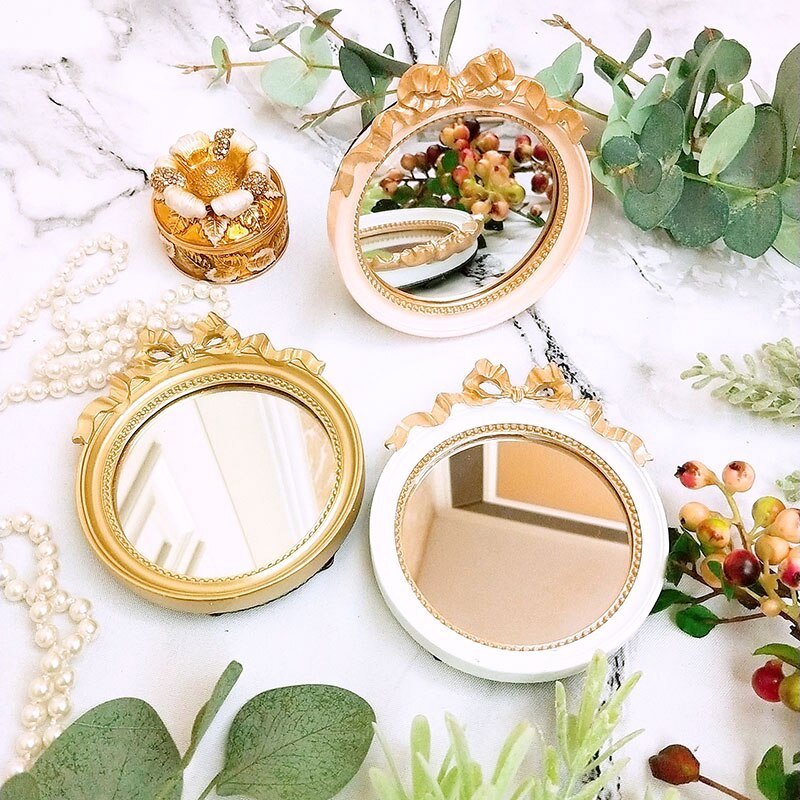 Portable Makeup Small Round Mirror Resin Case Pocket Mirror Retro