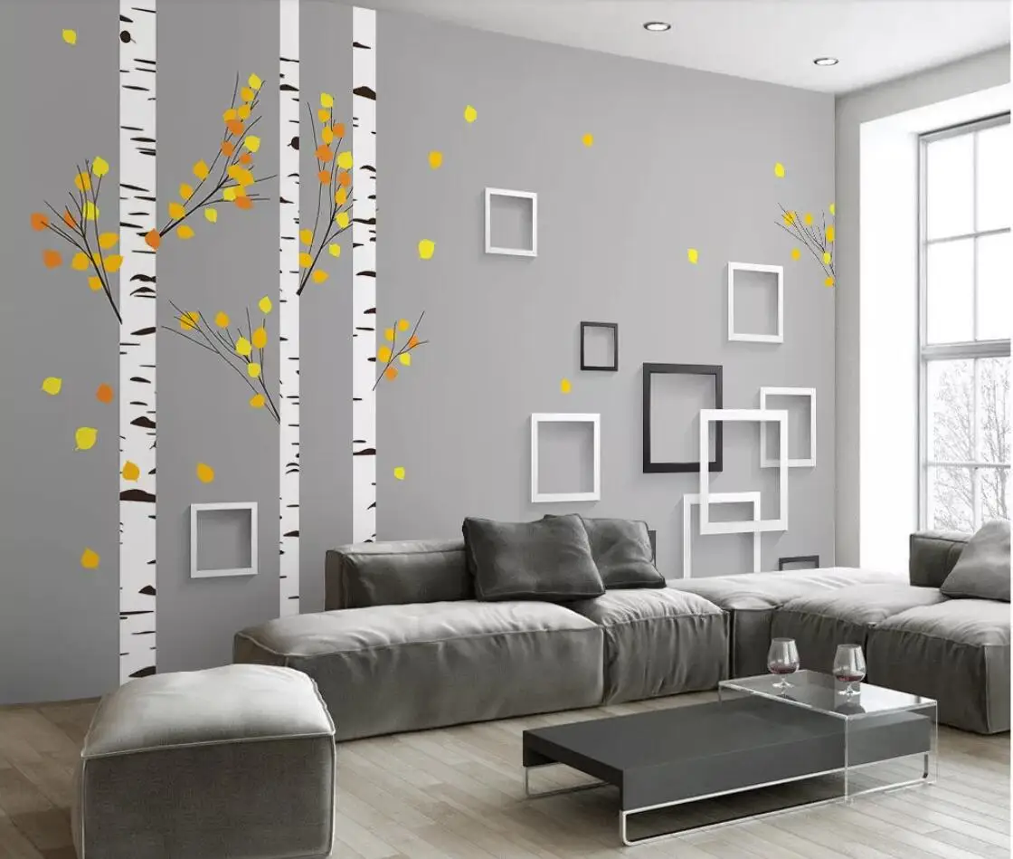 White Birch Wallpaper Geometric Square Mural Wall Paper Rolls For