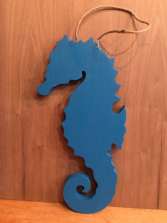 Large Blue Wooden Cutout Seahorse Nautical Decor Etsy
