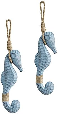 Why Decor Nautical Set Of 2 Wood Seahorses Wall Art Hanging Home