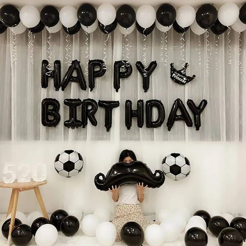 Mmqwec Happy Birthday Balloons Black White Latex Balloon Star