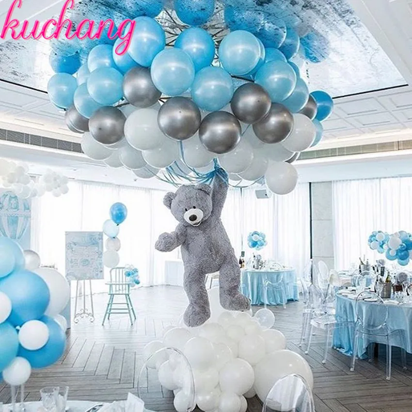 30pcs 10inch Blue Pink White Silver Mixed Latex Balloons For Happy