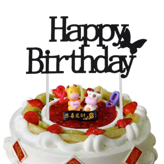 1pc Cake Toppers Happy Birthday Butterfly Cake Flag Gold Black
