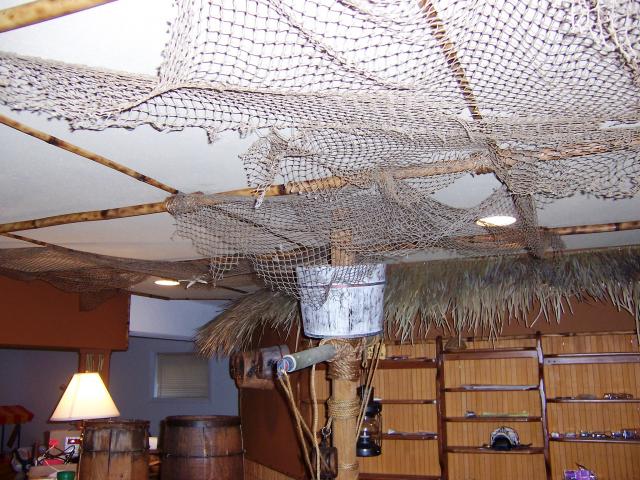 How to hang a decorative fishnet. Lighting ceiling fans. Fish net ceiling decor.