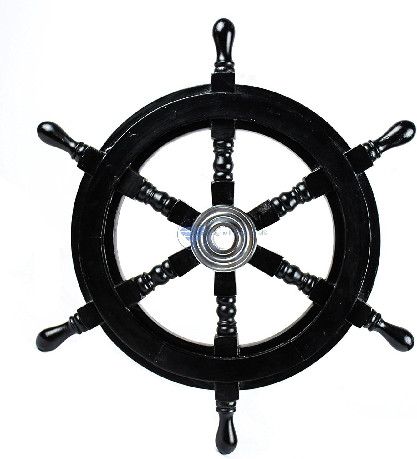 Amazon Com Nagina International Wooden Black Pirate Ship Wheel 24