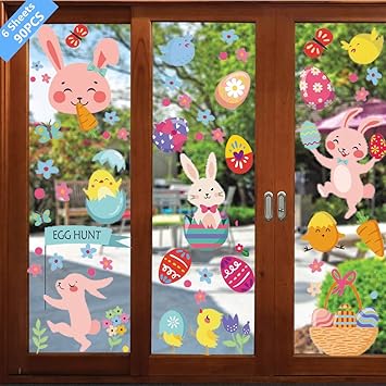 Amazon Com 6 Sheets 90 Pcs Easter Decorations Window Clings