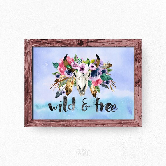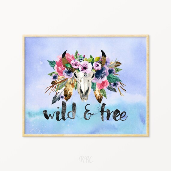 Wild And Free Boho Wall Decor Floral Bull Skull Wall Art Etsy