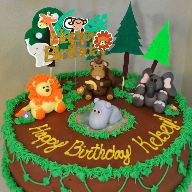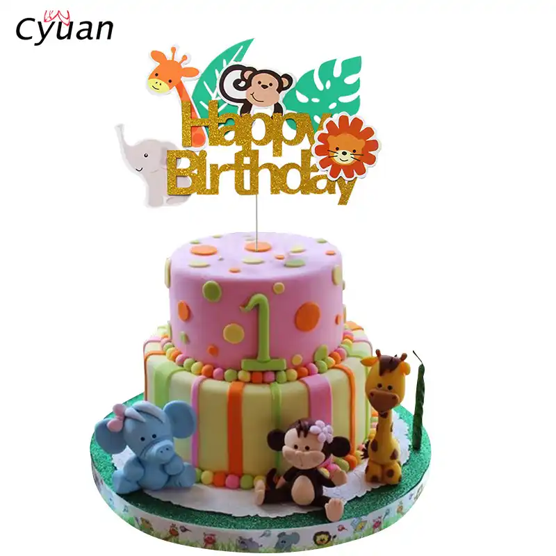 Cyuan Jungle Theme Party Happy Birthday Cake Toppers Animal