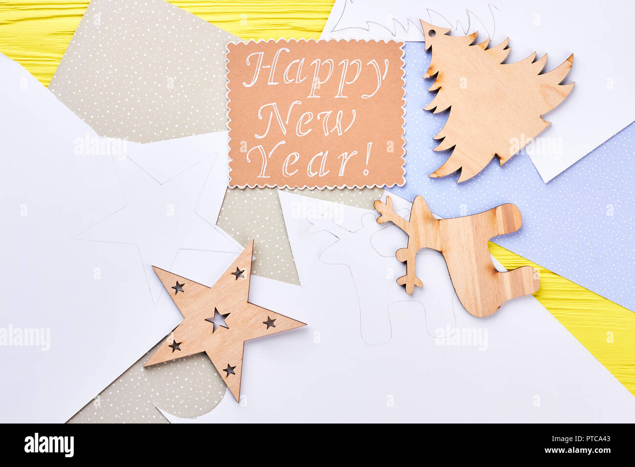 New Year Handicraft Wooden Background Handmade Wooden Christmas
