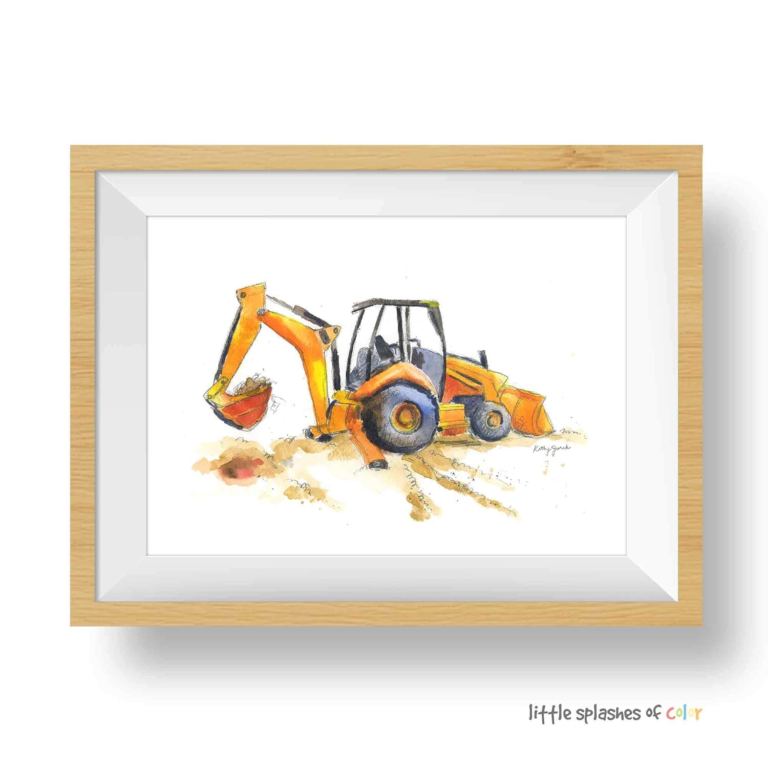 Watercolor Excavator Art Painting Pictures Kids Boy Room Wall