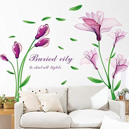 Amazon Com Wall Sticker Removable Purple Flower Fantasy Tv Sofa