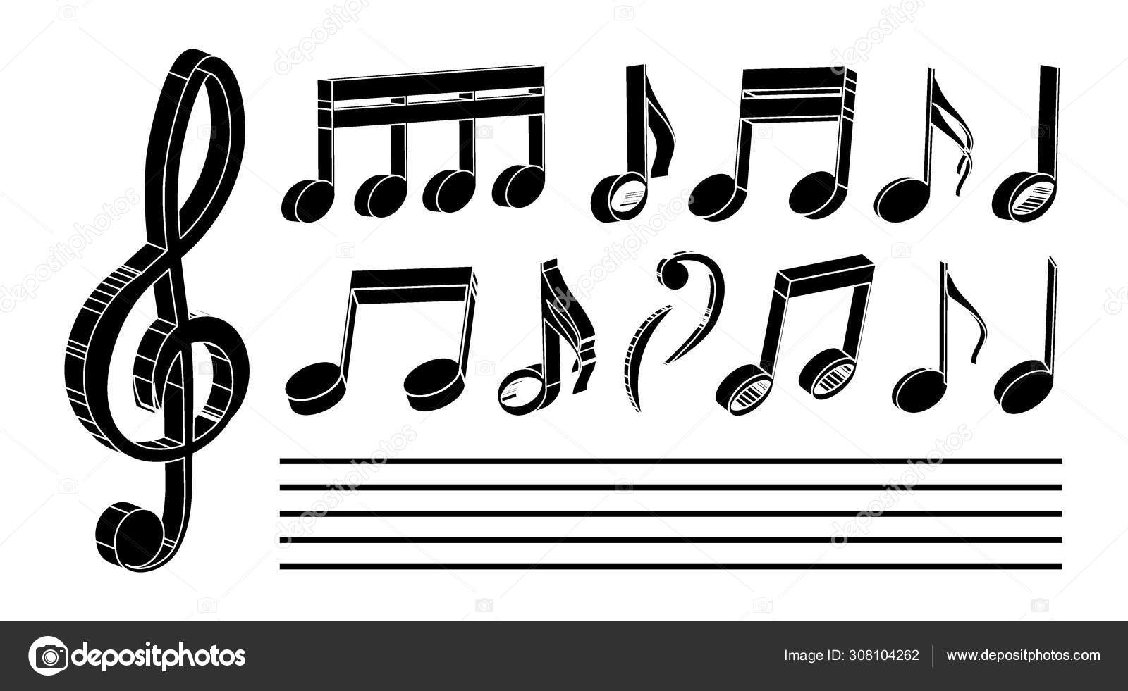 Realistic Musical Notes Treble Clef Isolated On White Background