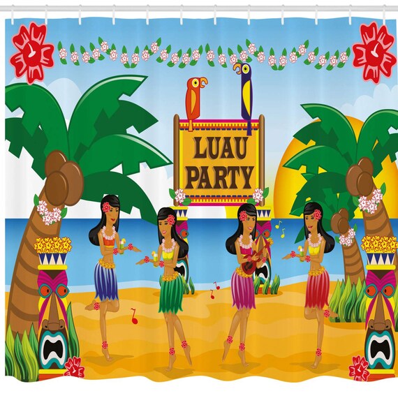 Tiki Bar Decor Shower Curtain Hawaiian Luau Party In Cartoon Etsy