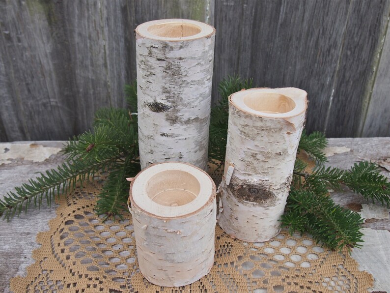 3 White Birch Wood Candle Holders Simple Natural Wedding Etsy