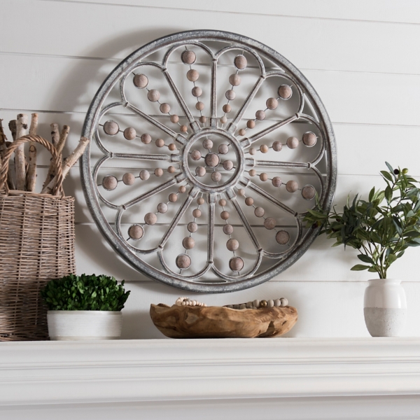 Galvanized Burst With Wood Beads Wall Plaque Kirklands