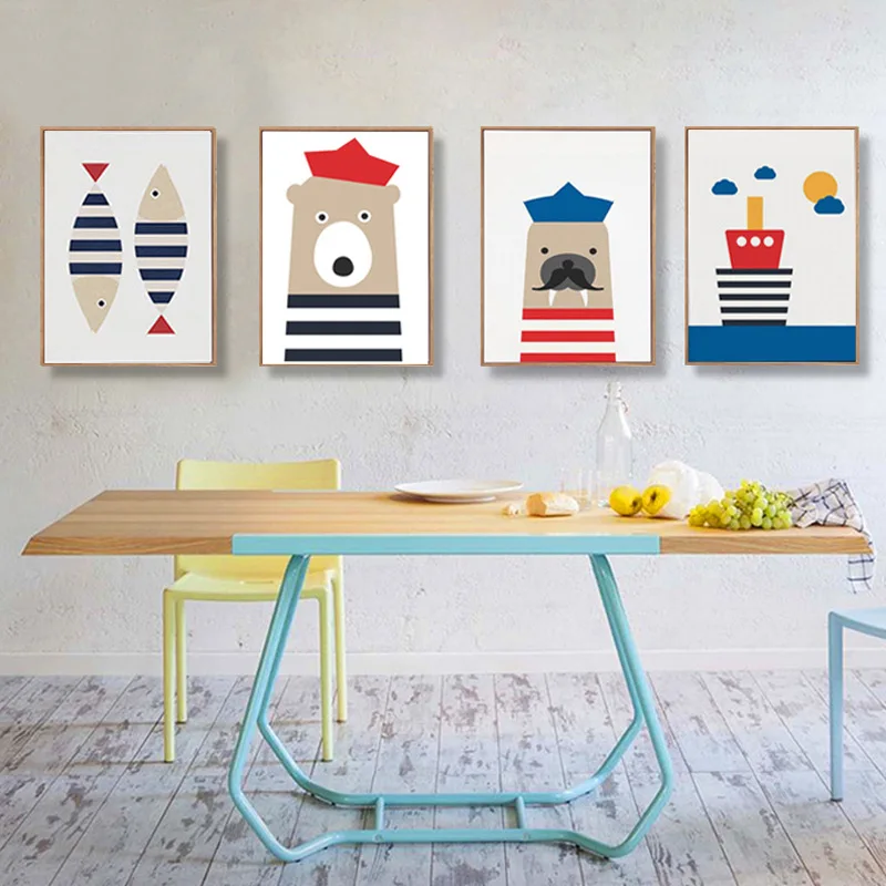 Cartoon Fish Sailor Modern Picture Print Poster Canvas Painting