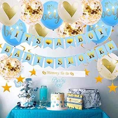 Baby Shower Decorations For Boy Blue And Gold Baby Reveal Party