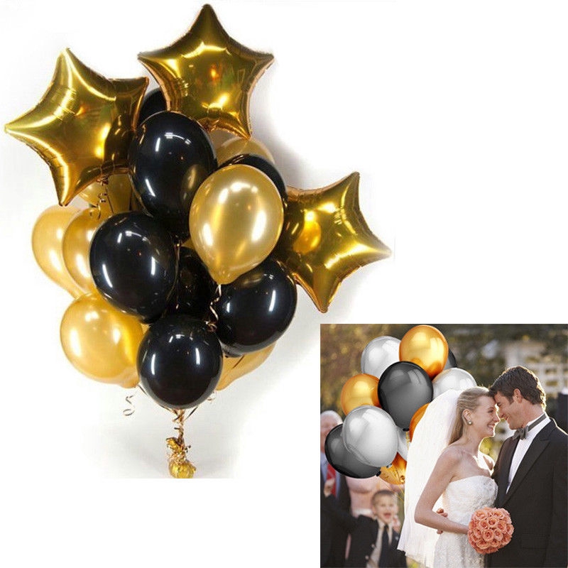 13pcs Lot 12 Black Gold Latex Balloons 18 Star Wedding