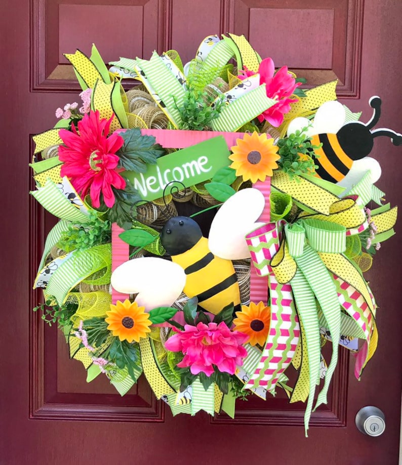 Bumble Bee Wreath Welcome Wreath Summer Wreath Front Etsy Bee