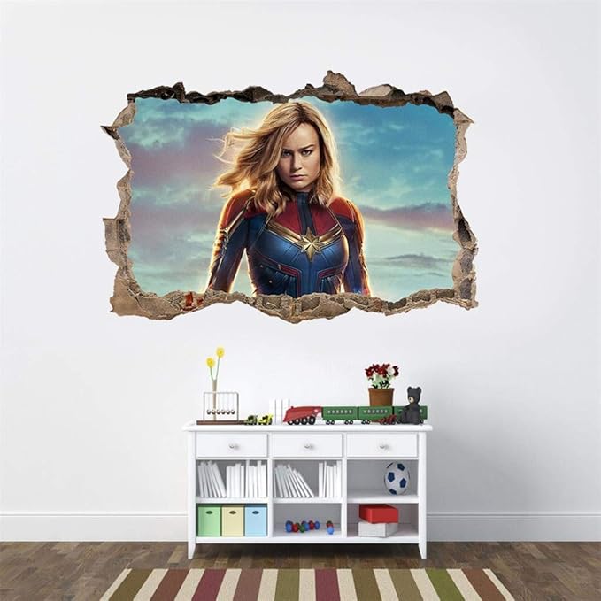 Home Decor Captain Marvel Decal 3d Smashed Wall Sticker Home Decor