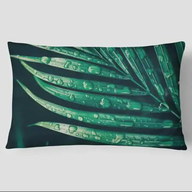 Tropical Palm Leaf Printed Pillowcase Dark Green Thin Linen