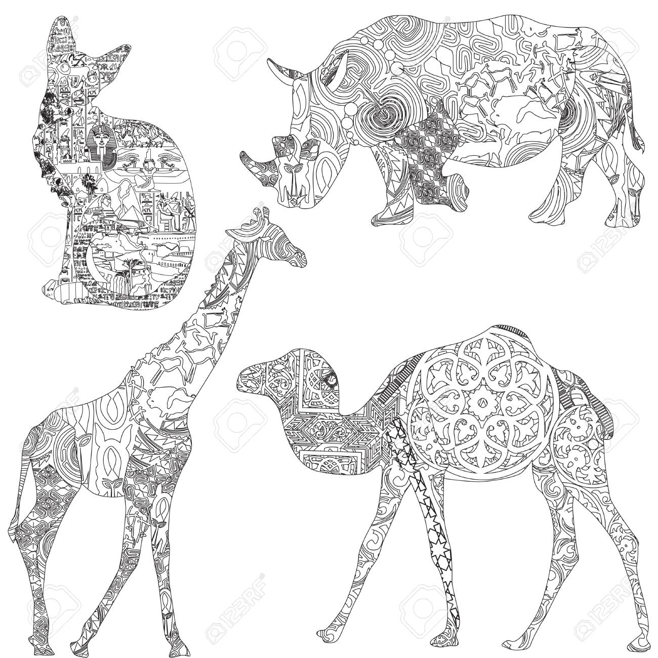 Set Of Animal Characters Of African Countries Cat Egypt