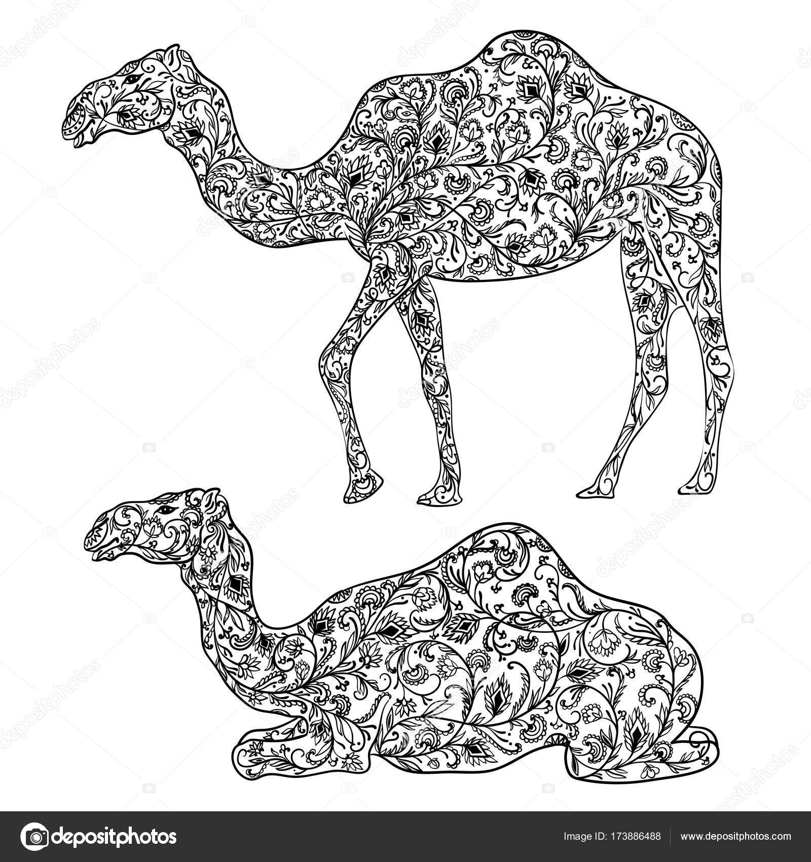 Camel Decoration With Oriental Ornaments Vintage Hand Drawn