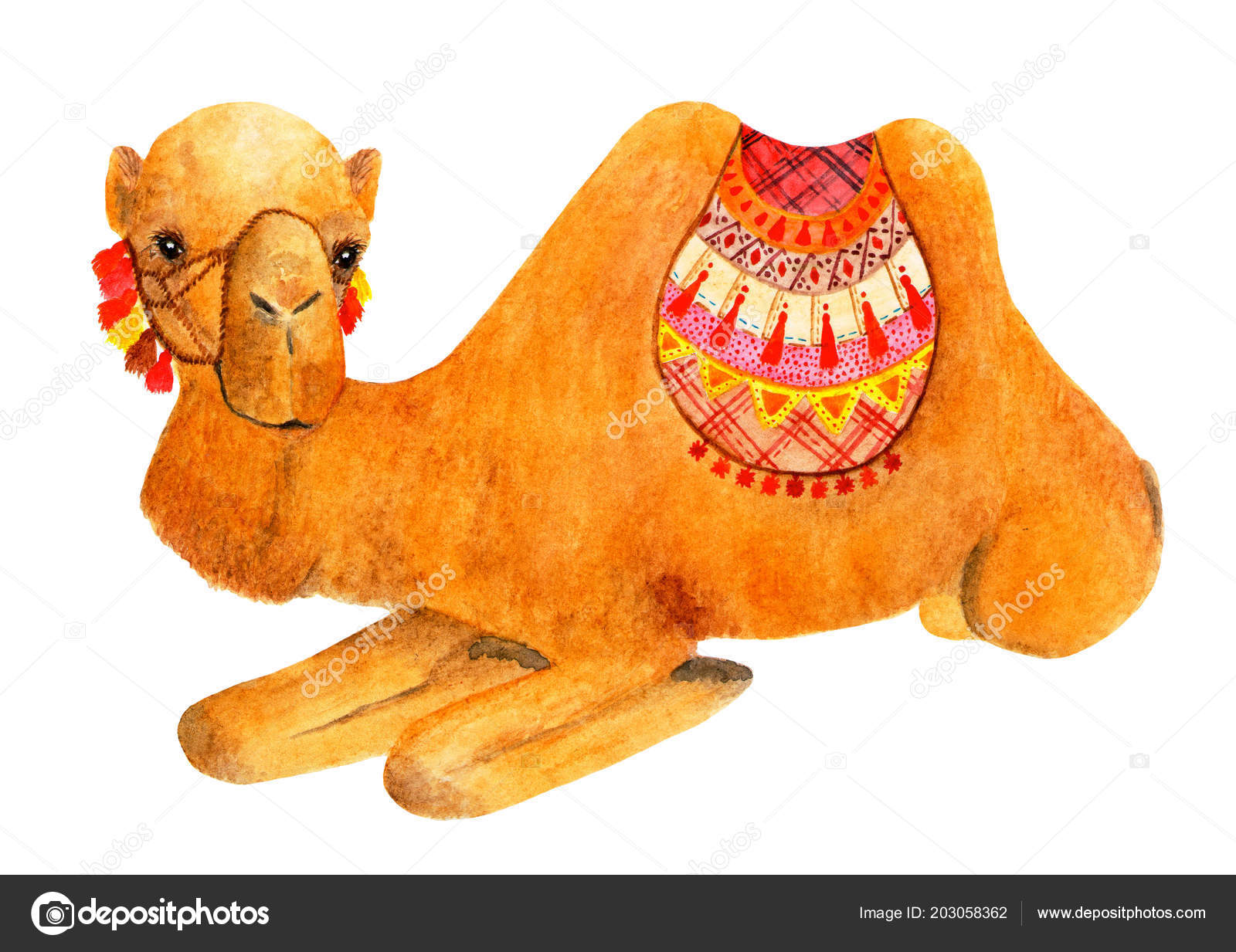Decorated Camel Drawing Lying Camel Decorated Bright Accessories