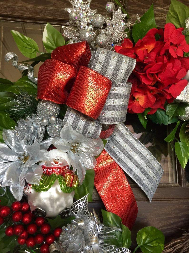 Red Silver Front Door Christmas Holiday Decorations Grapevine