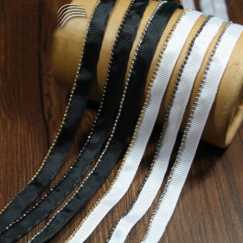 5 Yards 1cm 0 39 Wide Ivory Black Gold Metal Beaded Tapes Lace
