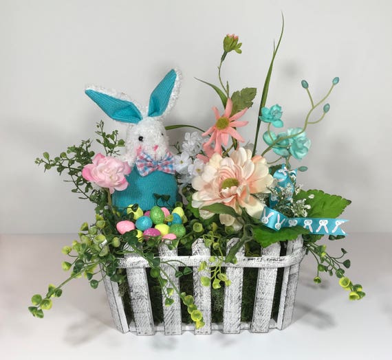 Easter Bunny Rabbit Floral Arrangement Rustic Basket Easter Etsy