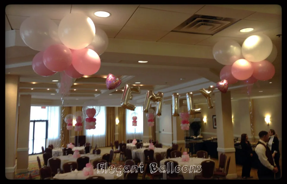 Elegant balloons located in pearl river provides fabulous balloon decorations to the new york and new jersey area. Decorating a ceiling with balloons not only adds to your party decor but the balloons can be used in party games and can be taken home as favors. We specialize in centerpieces and bar and bat mitzvah unique creations.