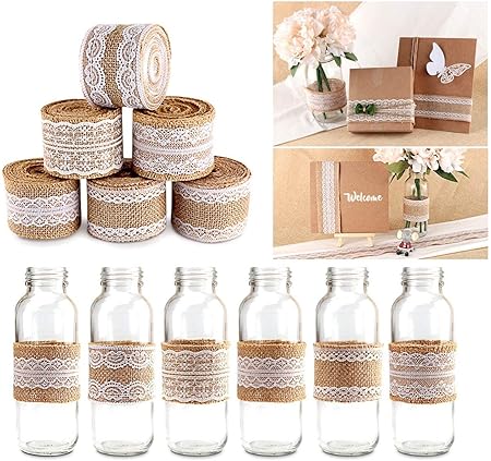 Funrun 9 Rolls Natural Hessian Ribbon With Lace Detail Hessian