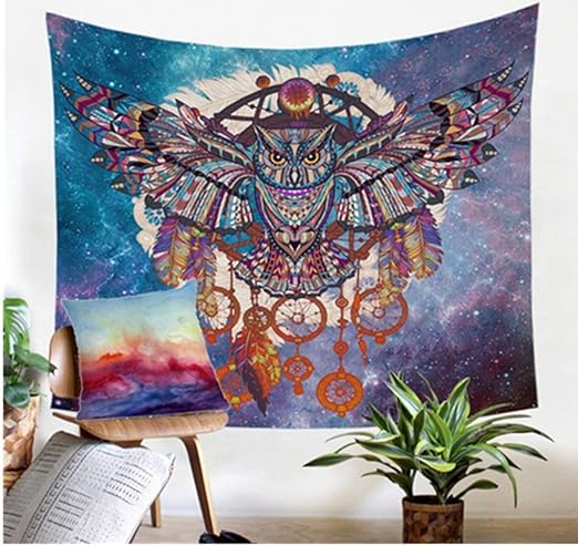 Amazon Com Jiamingyang Owl Dream Catcher With Feathers Tapestry