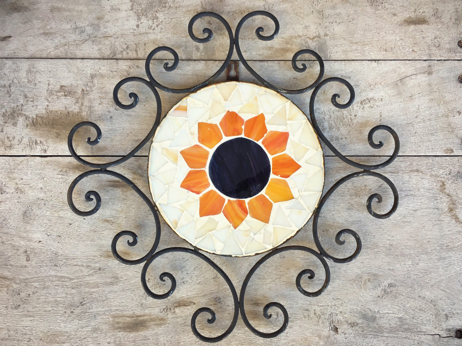 Mexican Forged Iron Mosaic Tile Wall Hanging Vintage Tile Mosaic