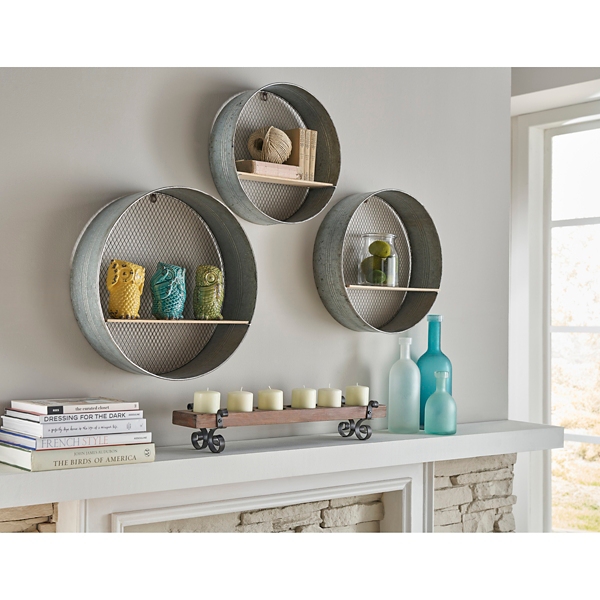 Round Wood And Metal Wall Shelves Set Of 3 Kirklands