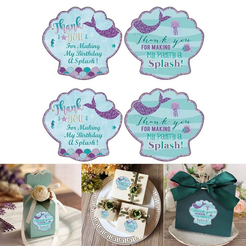 Pack Mermaid Sticker Thank You Sea Shell Label Party Favors