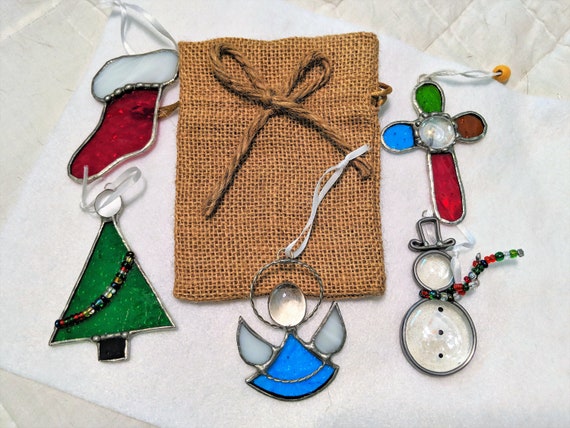 Stained Glass Christmas Ornaments Set Of 5 Etsy