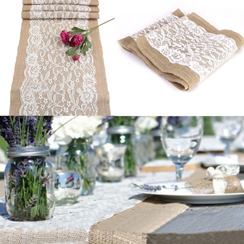 Burlap Hessian Lace Wedding Table Runner Natural Jute Rustic Party