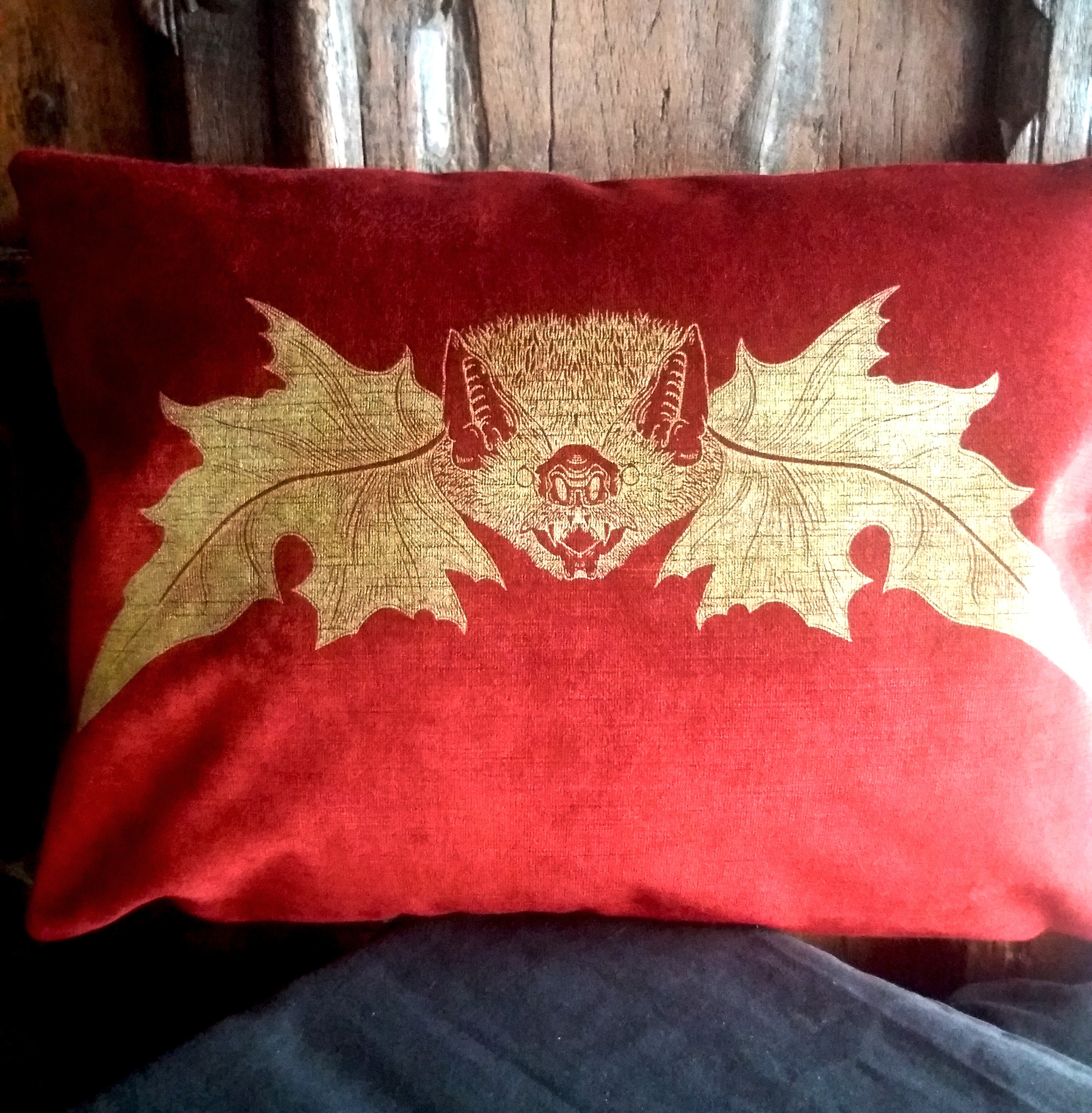 Vampire Bat Gothic Home Decor Cushion Heavy Weight Red Velvet Etsy